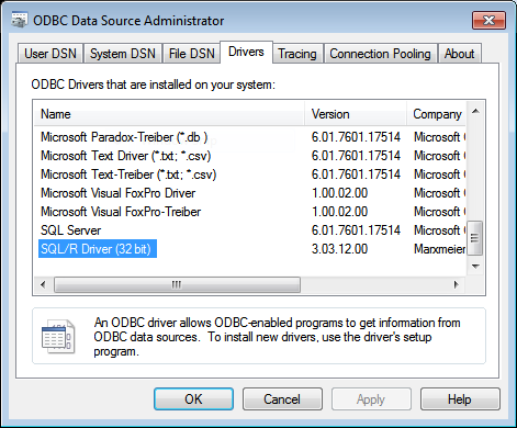 Start Menu » Programs » SQLR » 32-bit ODBC Administrator