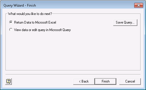 The "Edit Query..." button allows to modify the query in Microsoft Query.